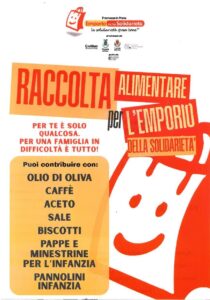 Venerdi 17 e Sabato 18 ottobre avrà luogo una raccolta alimentare presso i Supermercati della COOP e della CONAD indicati, a beneficio dell’Emporio della Solidarietà