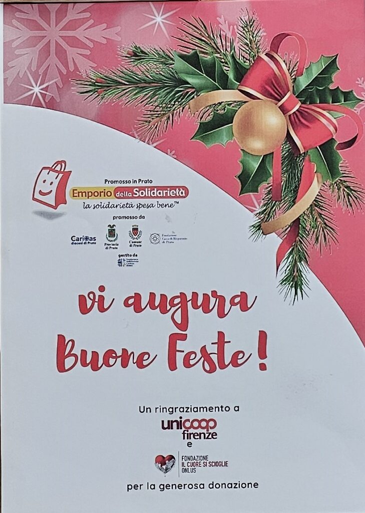 UNICOOP FIRENZE e FONDAZIONE IL CUORE SI SCIOGLIE hanno donato panettoni e pandori all’Emporio della Solidarietà che ha provveduto a distribuirle ai propri utenti e